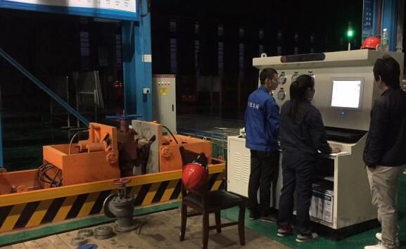 調整水源電接點壓力表,水泵開關<低壓水泵>開,先把被試閥門內部水注滿,低水壓力表為O 5MPa內水已滿,關掉水泵開關<低壓水泵>關。再按<高壓水泵開>調節供水泵壓力調節閥,<供水泵,液壓系統減壓閥J一25B>把液體試壓壓力達到和被試閥門密封壓力及電接點壓力表值相同時,高壓水泵就自動停機,關閉 <;總水開關>。保壓數分鐘后,水壓表無下降,測試密封完畢,開<泄壓開關 >,將被試閥門內的壓力泄壓,<水壓表>為零,可以放松被試閥門或同時繼續進行強度測試。