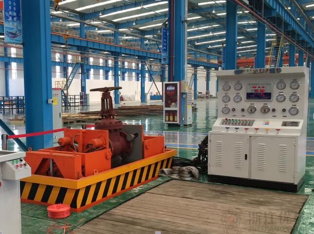 JWZQ型閥門液壓試壓機是我公司在積累多年生產閥門檢測設備技術的基礎上按照國家GB/T1 3927 — 92《通用閥門壓力試驗》和ZBJl6006-90《閥門的試驗與檢測》的標準規范要求,是公司自主研發的新一代沉水式液壓閥門試壓機并擁有發明技術專利知識產權,專利號ZL2016 1 0260566.7本機最大特點是將被測試工件浸入水中,在測試過程中可方便目測測試工作是否有泄漏,