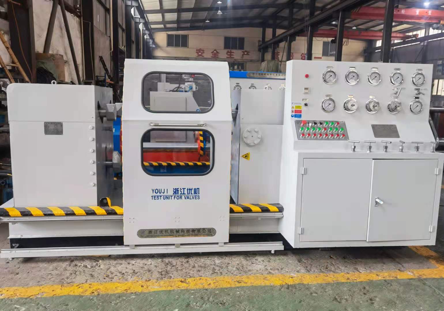 本機集機電、液壓、試壓、液體介質貯存循環使用于一體,具有功能完善、性能穩定、自動化程度高等特點。廣泛用于公稱通徑DNl 5-1000mm的直通式法蘭及螺紋連接各類高、中、低壓閥門的強度、密封和泄漏量等各項性能測試。測試介質:水、氣、油。最高密封試驗壓力 32.0MPa,強度48 0MPa。